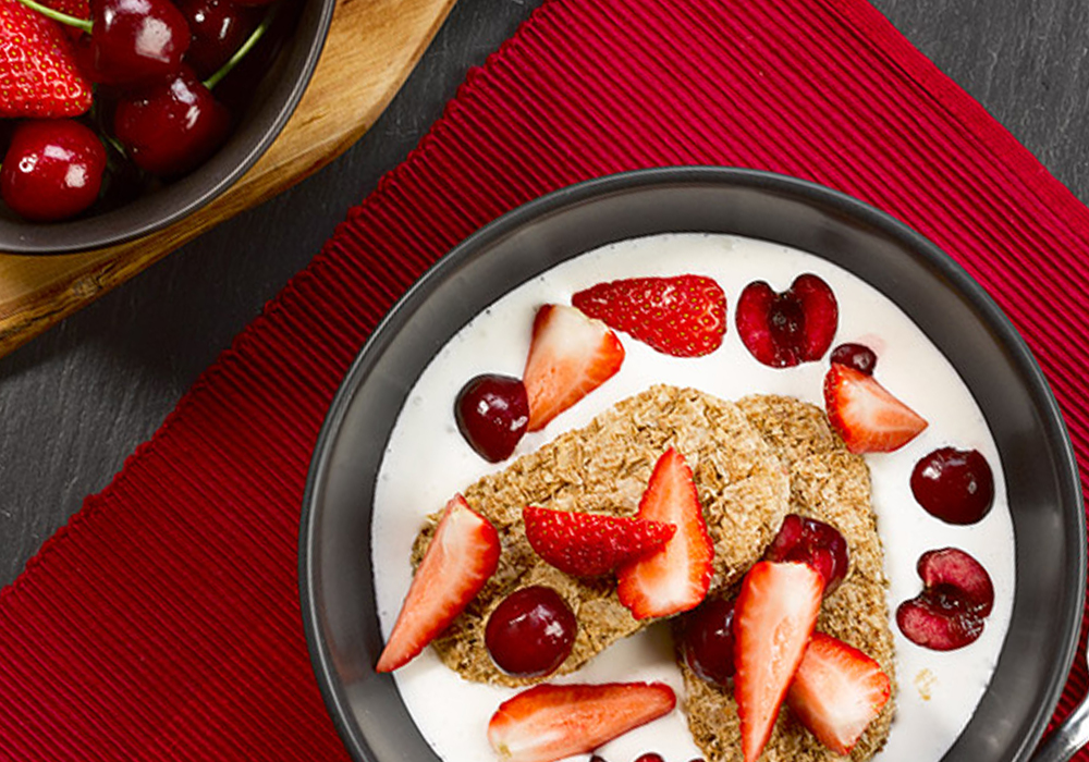 On dit que les fruits sont les bonbons de la nature et qui pourrait le contester quand il s’agit de cerises et de fraises mûres ? Ajoutés au bon goût des céréales complètes de Weetabix, c’est un délice d’été.