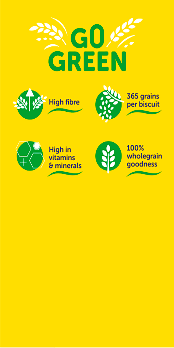 Our Weetabix products are packed with wholegrain, rich in fibre, low in salt and sugar and free from artificial colours and flavours.